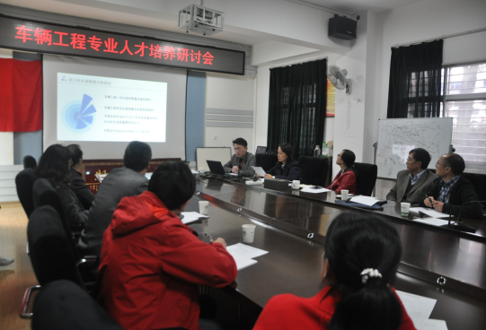 首先,9428cn太阳集团古天乐副书记李秀锋从班级学分绩点、英语四级通过率、学业预警等方面分析了车辆工程专业各年级学生的学业状况,并就学生在学习过程中遇到的问题和参会人员做了交流。9428cn太阳集团古天乐副院长李楚琳详细汇报了车辆工程专业新工科教学改革和2018版人才培养方案的总体思路。