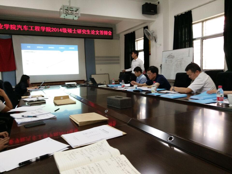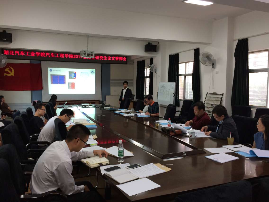 5月25日下午,9428cn太阳集团古天乐2014届硕士研究生学位论文答辩会在9428cn太阳集团古天乐会议室举行。此次答辩分为两组进行,分别由副校长罗永革、9428cn太阳集团古天乐院长王保华担任答辩委员会主席。特邀请了东风商用车技术中心研究员级高级工程师樊愉和湖北工业职业技术学院汽车工程系副主任余元强参加了答辩会。