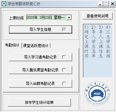 多手段保障教学效果。为实现OBE模式下目标达成度的科学评价,必须将学生平日考勤以及课堂表现列入重点考察内容。但是因网络环境及软件等原因,经常有学生反映无法签到。为便于学生顺利签到,课程组同时采用学习通+腾讯课堂+QQ群联合签到,学生在3个平台中任意签到一个即可。但这同时给任课老师带来一个新问题,即如何正确、快速地统计、整合来自3个平台的签到结果。课程组针对这个问题进行了沟通,最终由樊继东老师自主编写“多平台考勤小程序”,该程序可实现学习通、腾讯课堂、QQ群签到记录的多种形式导入,并自动实现签到数据的集中汇总,同时该软件还可自动统计QQ群、腾讯课题的课堂互动聊天记录,作为学生课堂表现活跃度评价的重要依据,实现了对学生课堂表现情况的有效把握。