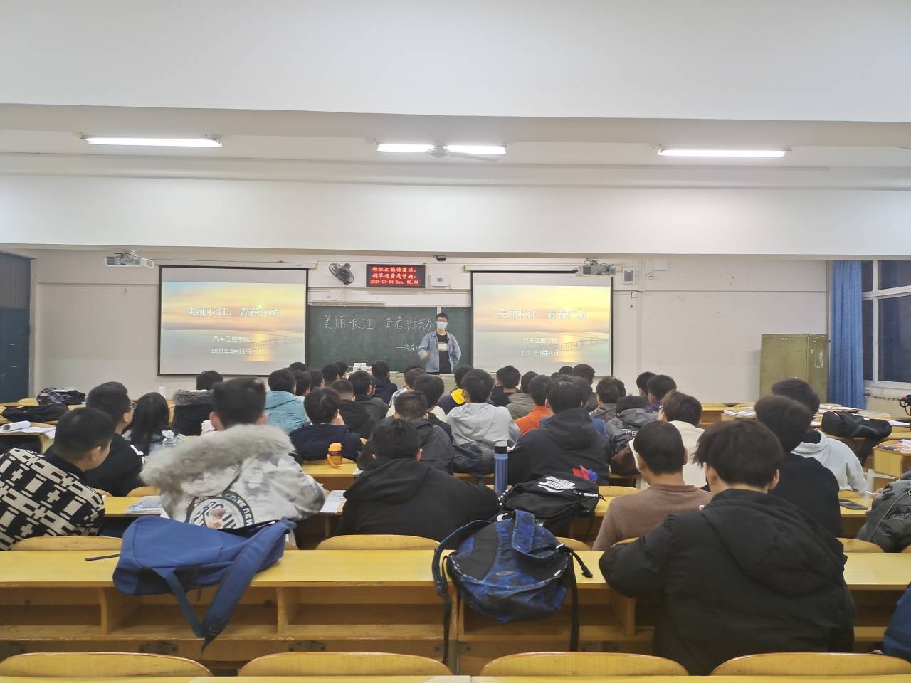 为积极响应团市委的号召,引导我院广大青年大学生不断提高自然生态环境保护意识,3月14日晚上6:30,9428cn太阳集团古天乐分团委在第五教学楼多个教室组织开展了《长江保护法》专题学习活动,2020级全体学生参加了此次团日活动。