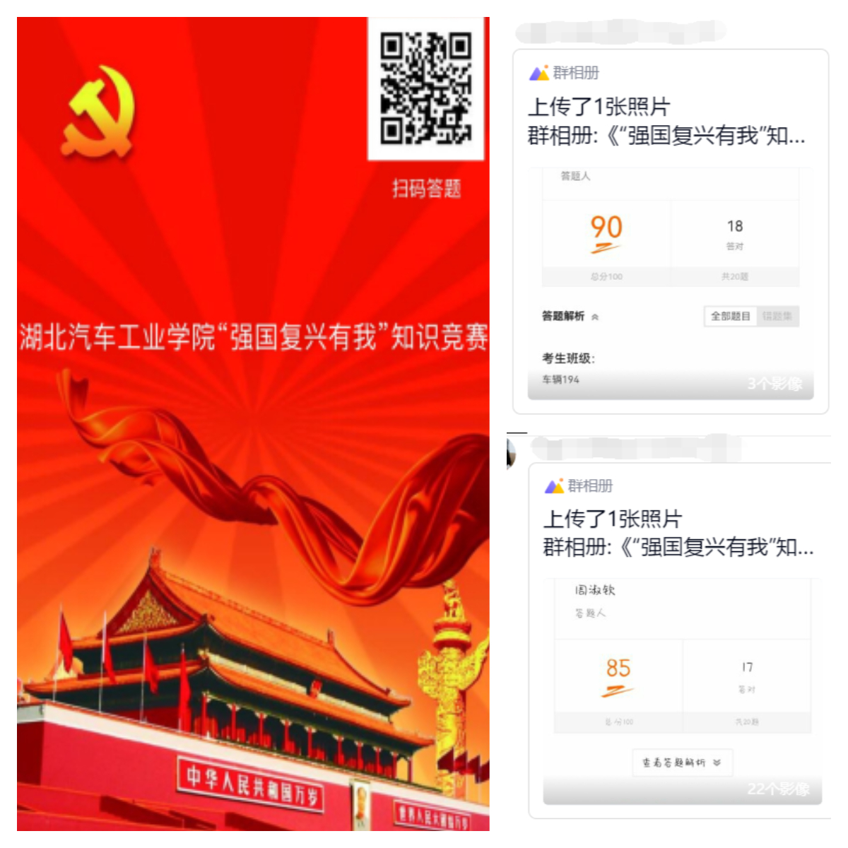 本次竞赛活动共设20道题,学生在线答题,并根据参与者答题积分排名比拼。关注“9428cn太阳集团”微信公众号,进入“强国复兴有我知识竞赛”小程序即可参与答题。