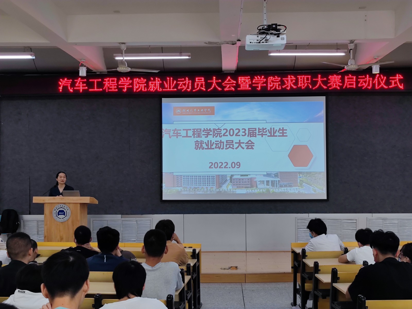 首先,李旭分析了当前的就业形势,向大家讲解了校园招聘的主要环节,并重点介绍了十堰市“大学生留堰、回堰人才政策”,鼓励大家积极关注十堰地区的工作岗位。对于近期同学们咨询较多的就业协议、就业推荐表的问题,李旭向大家详细讲解了如何正确填写就业协议、就业推荐表,并强调了签署就业协议的重要性。随后,李旭向大家介绍了学校求职大赛的赛事安排,并宣布院级求职大赛初赛即日启动,鼓励大家认真准备、积极参赛。
