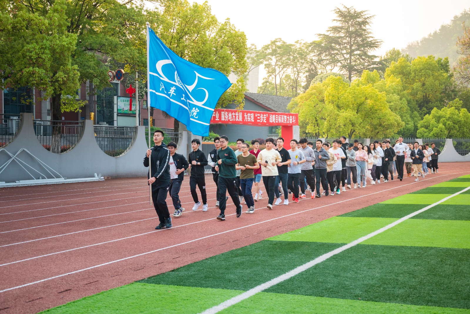 全院学生开展阳光健康跑活动,提高学生身体素质,促进学生全面发展。此次升旗仪式进一步加强了学院学风建设,增强了师生国家安全意识,更加坚定了广大汽院青年争做有理想,敢担当,能吃苦,肯奋斗的新时代好青年。