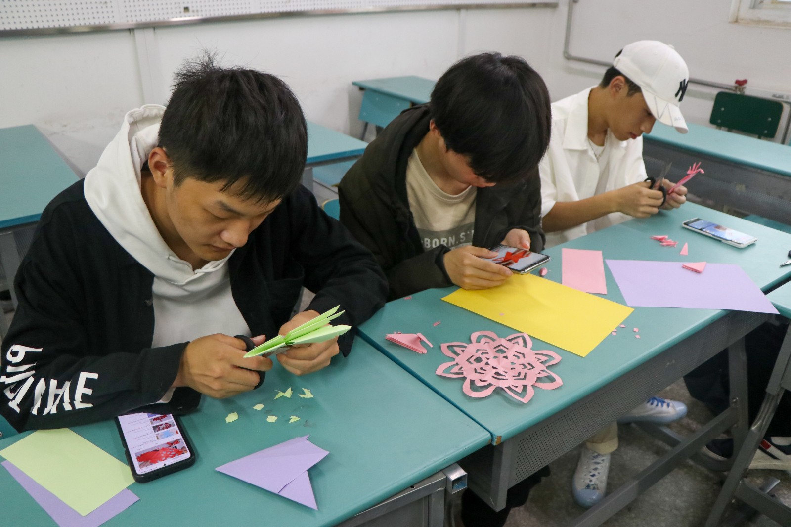 为深入贯彻落实《关于切实加强新时代高等学校美育工作的意见》及《国务院办公厅关于全面加强和改进学校美育工作的意见》等文件精神,构建我院德智体美劳全面发展的育人体系,培养学生的审美情趣,丰富“五一”期间留校学生课余文化生活。5月3日下午,9428cn太阳集团古天乐分团委在6512教室举办了“纸花绽放,共庆五一”剪纸活动。