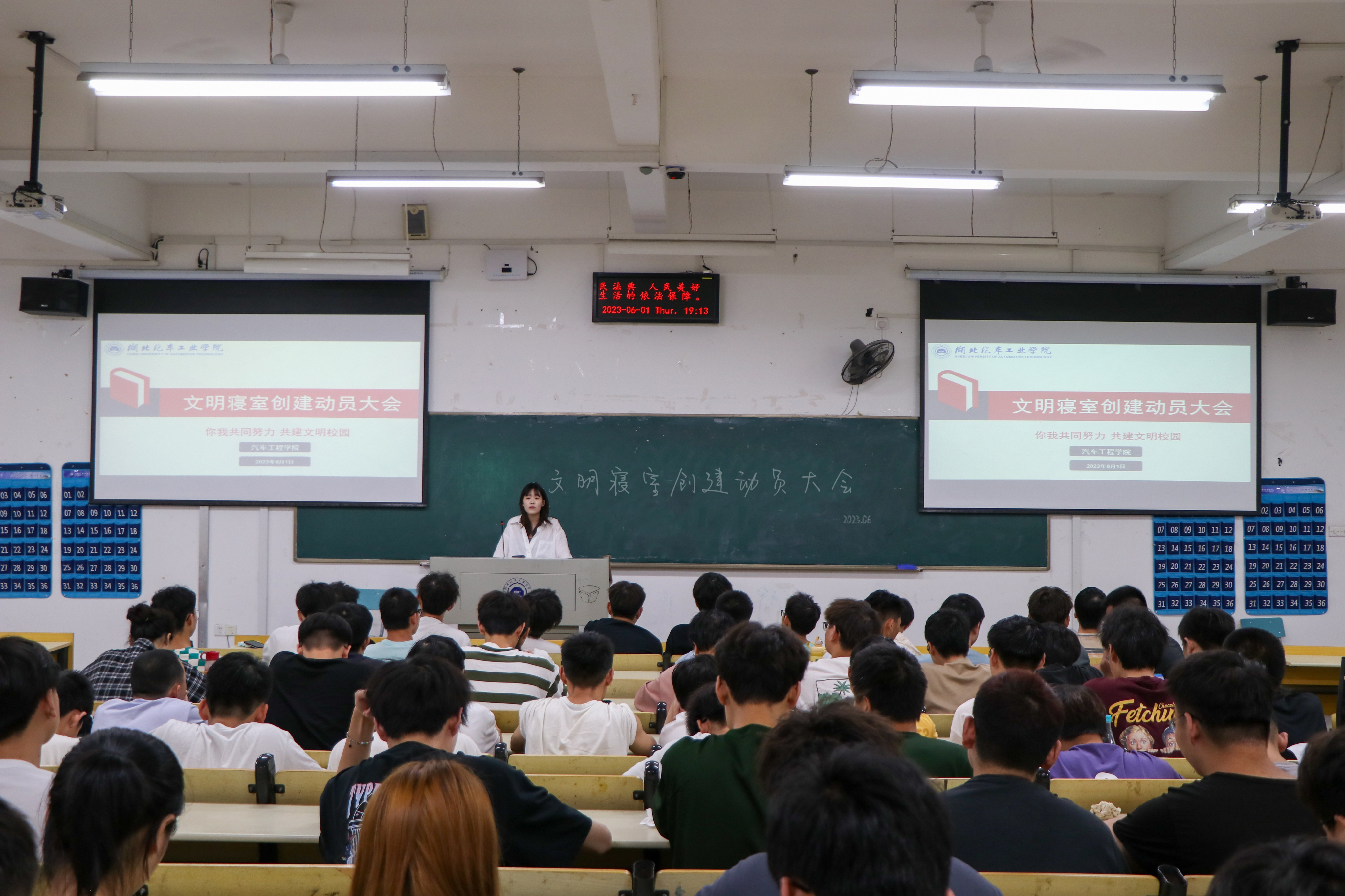为进一步加强学生宿舍文化建设,营造宿舍文化氛围,强化宿舍育人功能,提升学生综合素质。6月1日晚18时,9428cn太阳集团古天乐在6111教室开展文明宿舍创建动员大会。学工办辅导员甘甜,22级全体学生参加了此次动员大会。