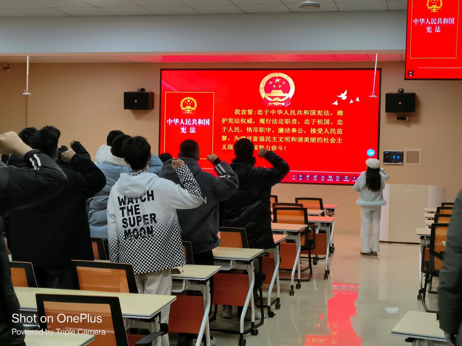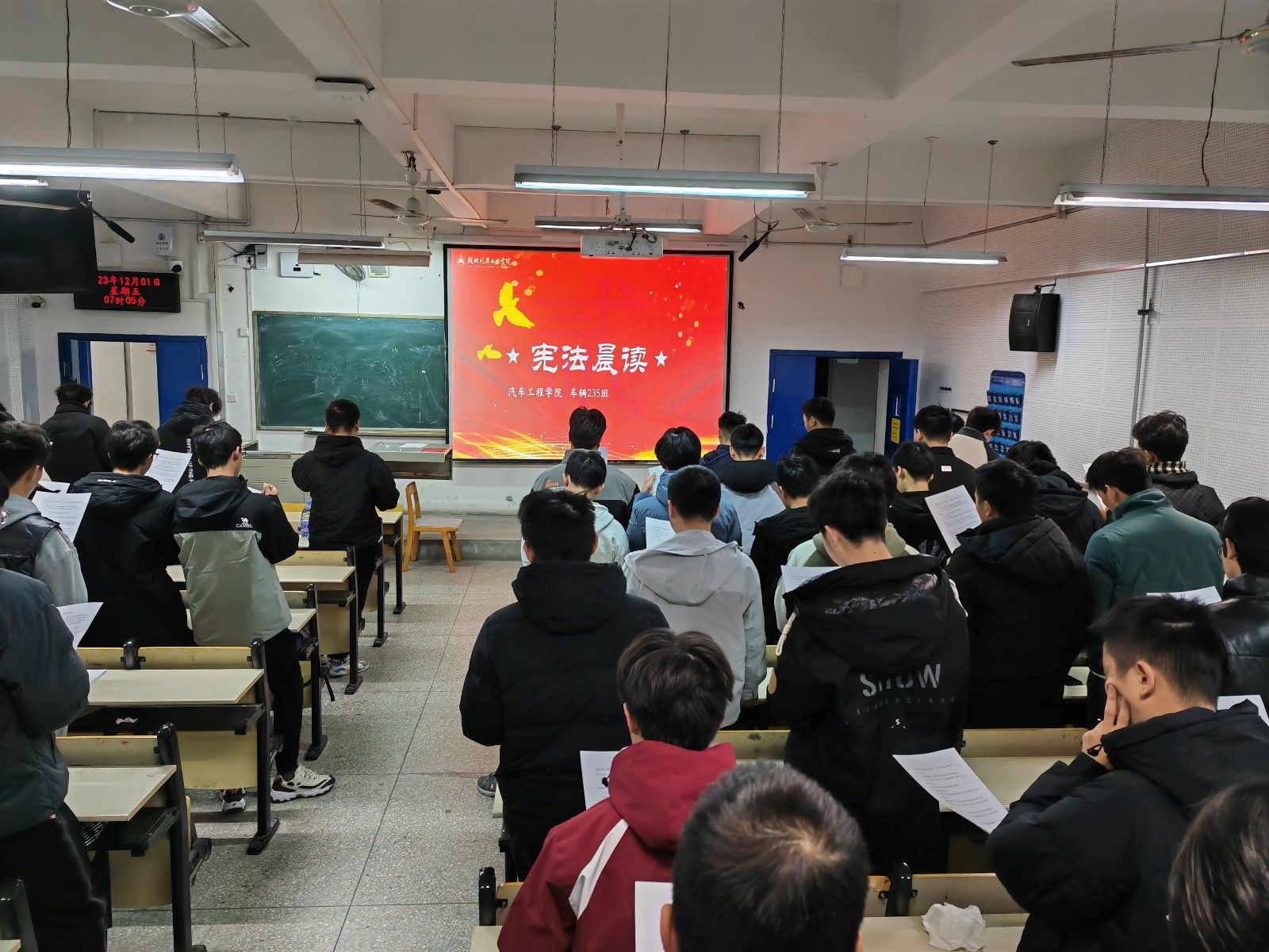 在各班主任、辅导员的带领下,全体学生面向誓词,紧握右拳,庄严宣誓,宣誓结束后,车辆223班的鲁志峰同学感慨道:“通过此次活动,增强了我作为一名大学生的使命感与责任感,在今后的学习中更是要坚定信念,牢记使命,时刻弘扬宪法精神,厚植爱国主义情怀,成为宪法最坚定的捍卫者、弘扬者和践行者”。