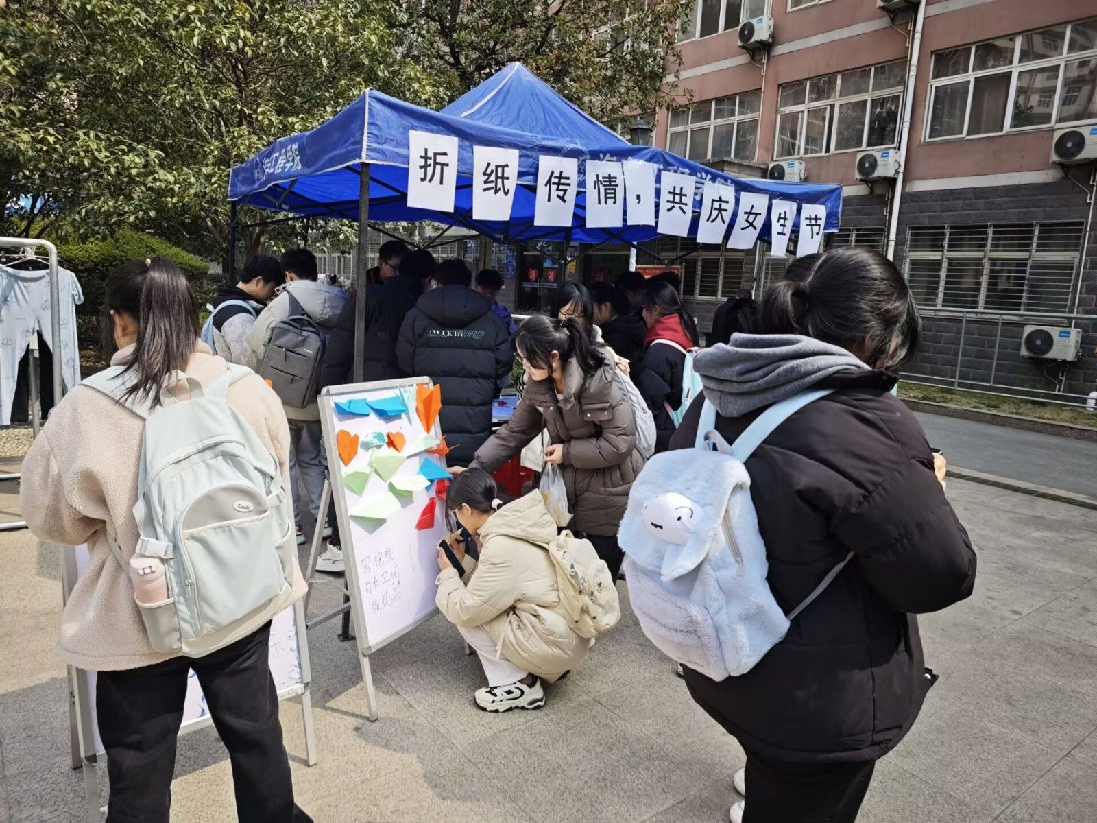 本网讯(文 汪云飞、曹闪闪/图 朱嘉豪)3月7日,9428cn太阳集团古天乐在桃园广场举办“折纸传情,共庆女生节”主题活动,以传统折纸艺术为载体,通过趣味互动倡导女性权益,为全校女生送上节日祝福。
