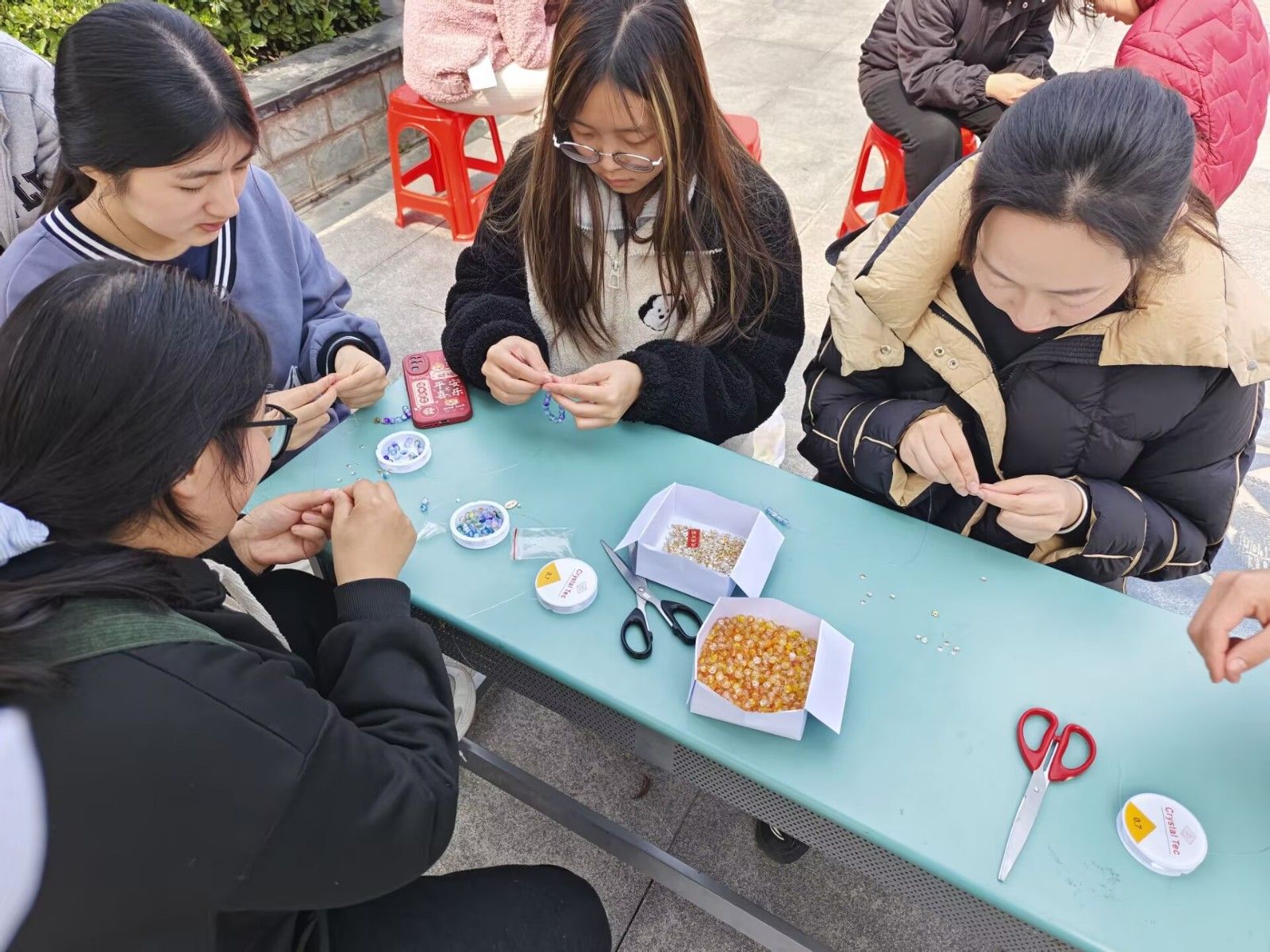 “没想到传统手工艺这么解压!”“看着一颗颗小珠子慢慢变成作品,焦虑感都消散了。”参与学生纷纷表示,串珠过程中专注的“心流体验”有效缓解了学业压力,集体创作的氛围更强化了情感联结。