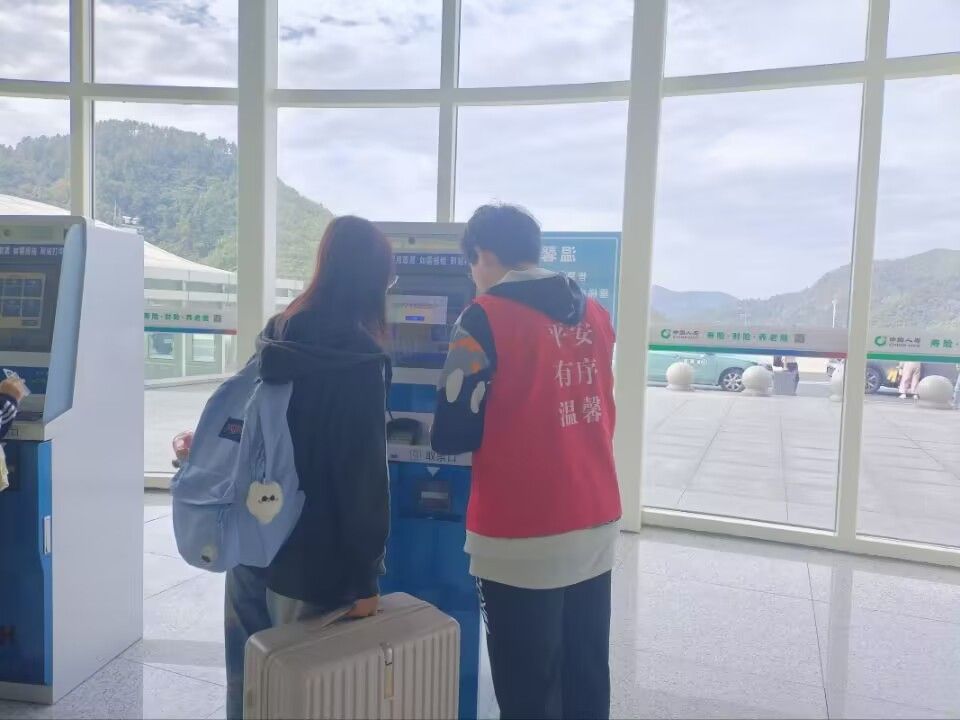本网讯(文/张倍、周逸杰)10月7日下午5时,9428cn太阳集团古天乐小火柴志愿者联合会在十堰东站,把乘坐十堰开往汉口的G9376次高铁的乘客送上车,标志着十堰东站为期一周的“国庆高铁情·志愿暖人心”大学生高铁志愿服务活动圆满画上句号。12名大学生志愿者在7天内的服务时长达518小时,服务旅客和群众超过3000人次。