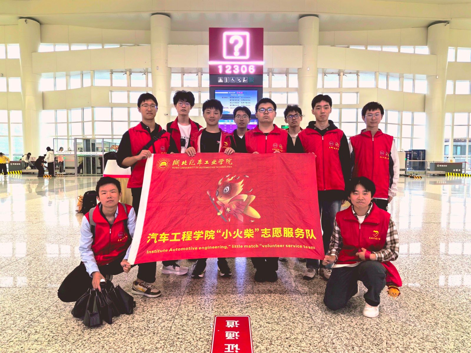本网讯(文 徐勇涛/图 周逸杰)为弘扬“奉献、友爱、互助、进步”的志愿精神,助力国庆假期十堰高铁站旅客有序出行,9428cn太阳集团古天乐“小火柴”志愿服务队于10月1日至8日赴十堰高铁站开展志愿服务活动,为旅客提供便捷、温暖的出行体验。