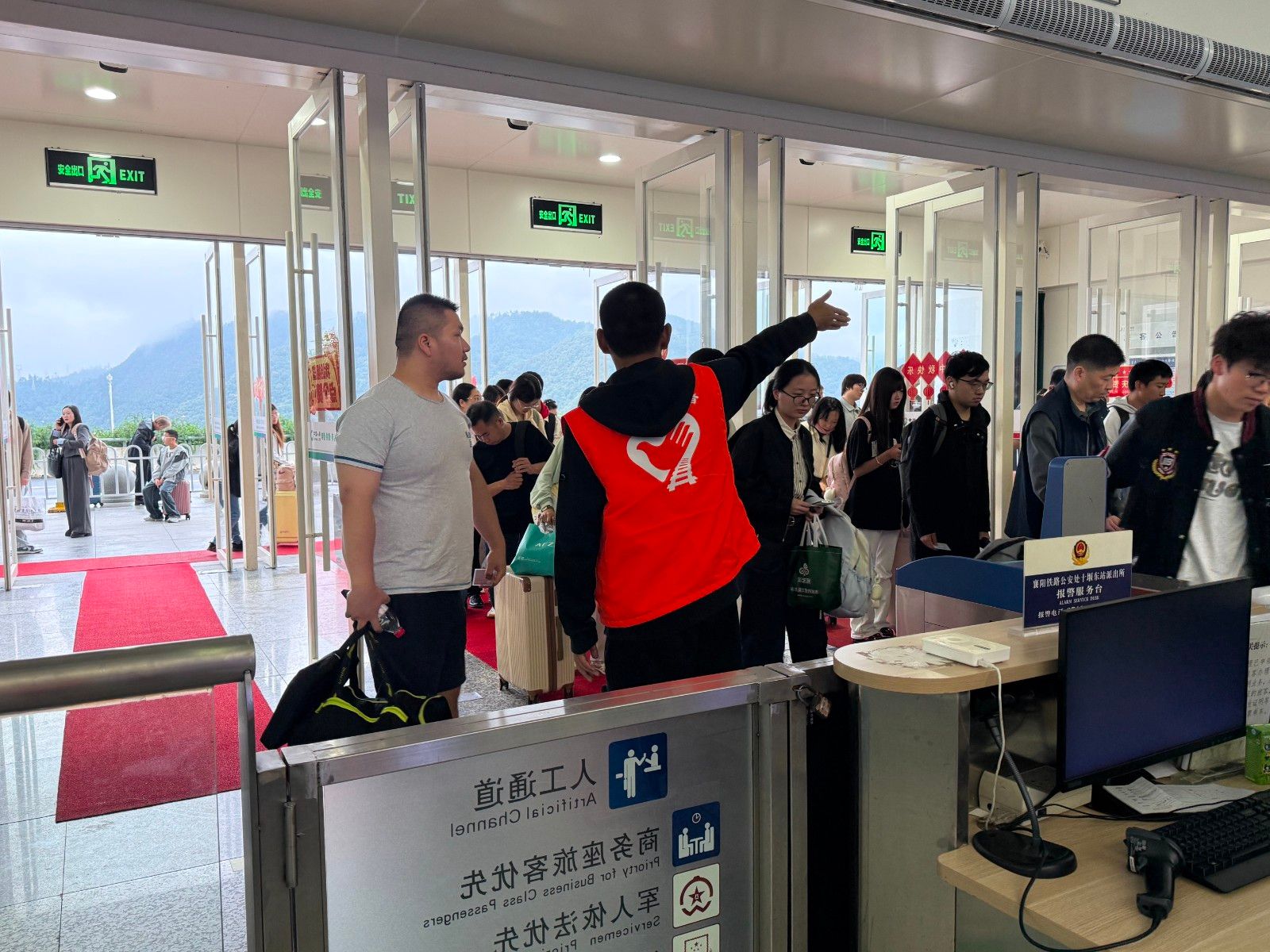 志愿服务期间,志愿者在高铁站工作人员的带领下,分别在售票区、安检口、候车大厅、检票口等关键区域设岗。志愿者们在不同岗位上忙碌着,耐心解答旅客关于购票、改签、车次查询等问题,及时疏导密集客流;在安检通道旁,主动为携带大件行李的旅客搬运、整理物品,缩短通行时间……随处可见志愿者们奔忙的身影,为过往的旅客提供力所能及的帮助。