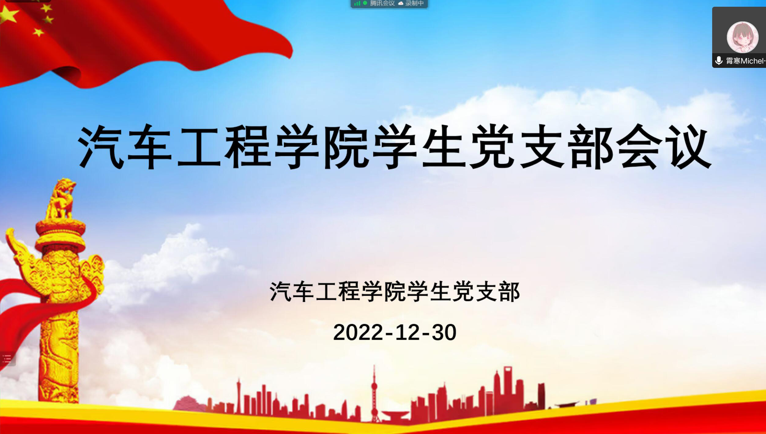 12月30日下午9428cn太阳集团古天乐学生党支部召开了线上预备党员转正大会,以视频会议形式讨论徐忠福等5名同志的转正事宜。学生党支部书记胡霄寒主持会议。