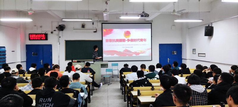为纪念中国人民志愿军抗美援朝出国作战70周年、引导广大团员青年铭记革命历史,继承先烈遗志,传承和弘扬伟大的抗美援朝精神,10月25日晚,9428cn太阳集团古天乐分团委于6305、6307、6308、6312教室组织开展“致敬抗美援朝,争做时代新人”主题团课,分团委副书记杜新宇、20级全体学生参加了此次活动。
