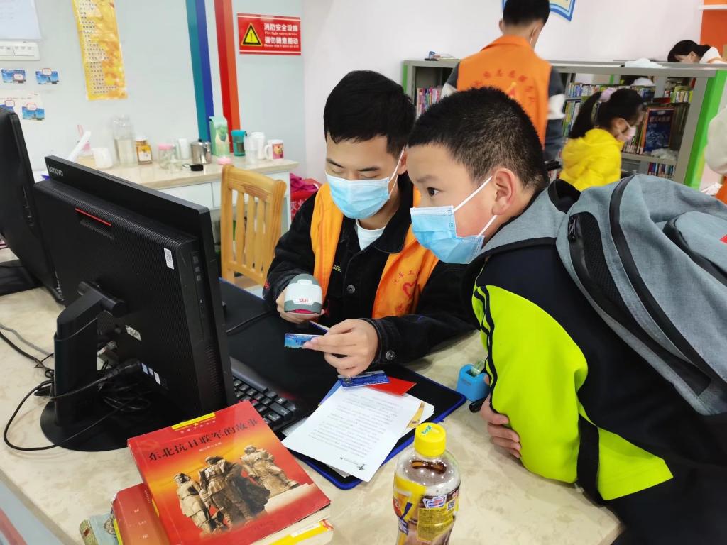 此次活动主要是维护图书馆儿童区秩序,帮助孩子们顺利完成书籍借还,也承担部分整理分类图书的任务。活动开始,市图书管理员为队员们初步讲解借还书的规范流程与注意事项,领队吴宇菡安排队员们以两到三人为一组,分别负责前台借阅咨询、书籍归类整理、引导中小学生正确使用自动还书机等工作。除此之外,部分志愿者在管理员的带领下于儿童区出入口维护秩序,并且提供图书借阅咨询服务。