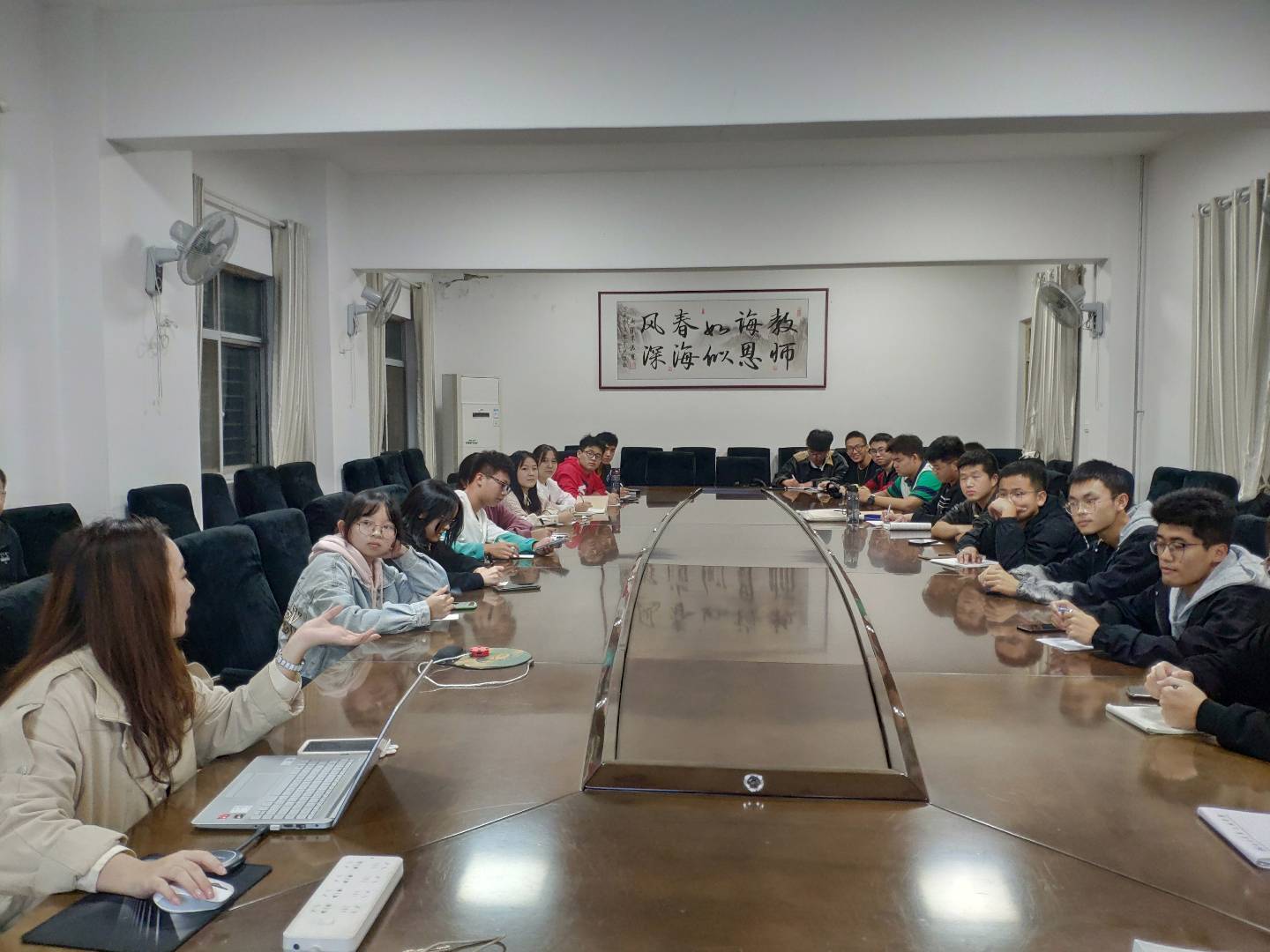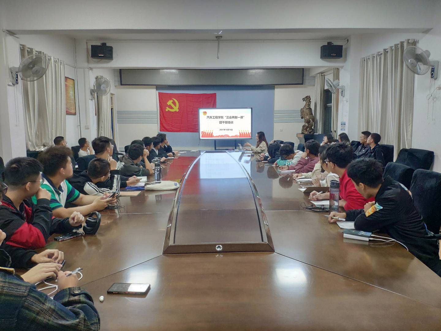 “三会两制一课”是团的组织生活的基本制度,是团内政治生活的重要内容,是推进从严治团的基础性工作。为便于全院团支部和广大团员学习领会执行好“三会两制一课”制度的落实,提升各基层团支部的凝聚力,9428cn太阳集团古天乐分团委于2021年10月16日19时在汽车大院二楼会议室组织21级全体团员进行了学习。辅导员李键雯、分团委学生干部以及21级全体团员参加了此次培训会。
