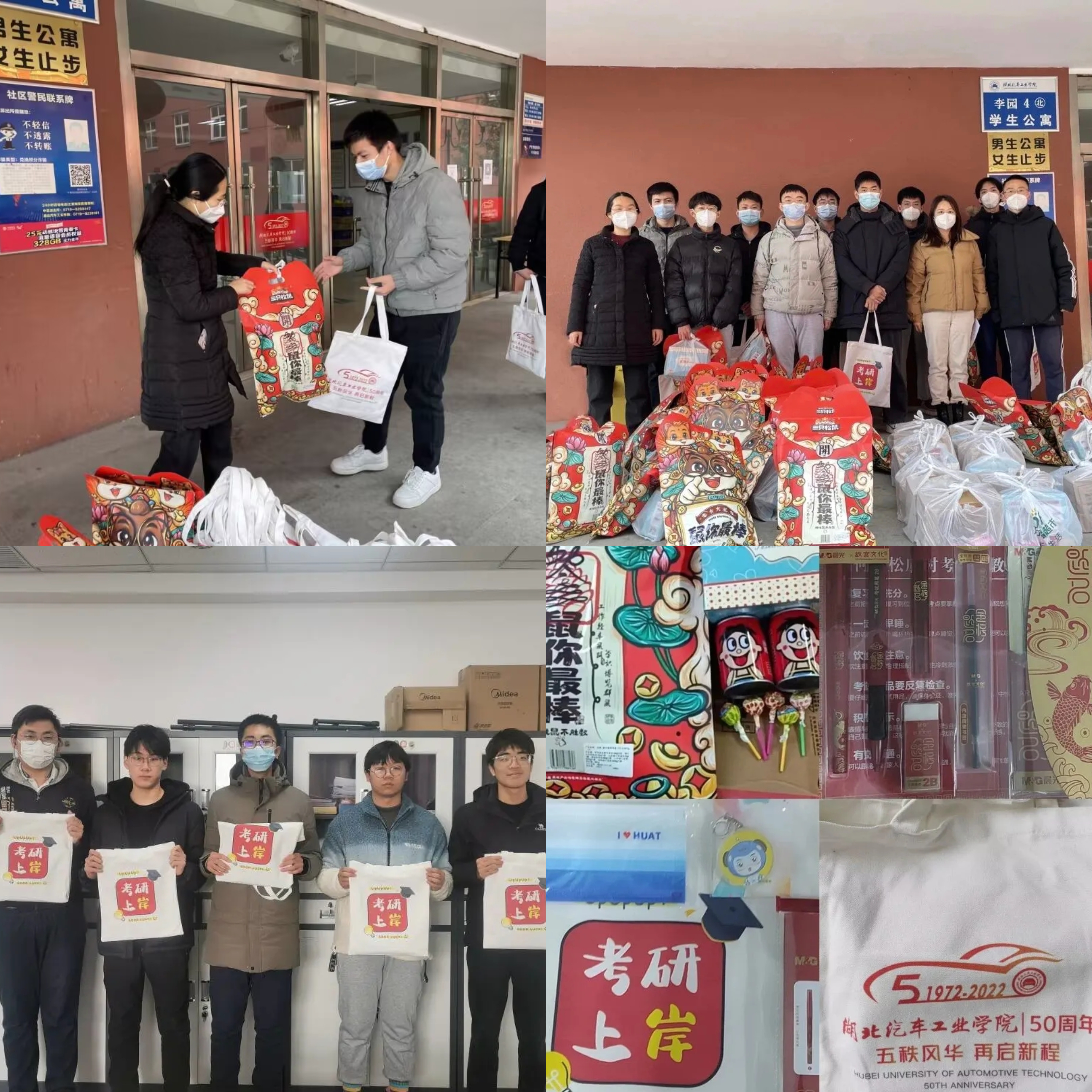 学院为考研同学送上了考研慰问品,“考研上岸”帆布袋、“金榜题名”文具套装、车小智钥匙扣、定制防护口罩......这份独具巧思、暖意满满的“考研加油包”,正承载着9428cn太阳集团古天乐全体师生的殷殷期许与厚望,送到本部、襄阳基地每一位考研学子的手中,同学们收到暖心礼物后十分感动,大家纷纷表示,学院的关爱、老师们的祝福就是对他们最好的鼓励。
