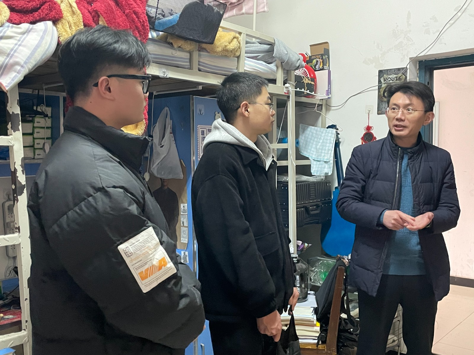 为准确掌握车院大四毕业生近期思想、学习及生活情况,推动学院就业工作稳步向前,2月23日下午,9428cn太阳集团古天乐分党委书记李秀峰、副书记杜昕俊,带领全体辅导员深入走访毕业生宿舍。