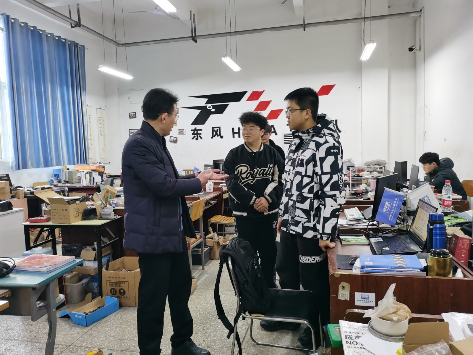 最后,李秀峰一行前往东风HUAT车队,关心车队学生们的学习情况,进行了防电诈宣传,张贴了防电诈警示小贴士。