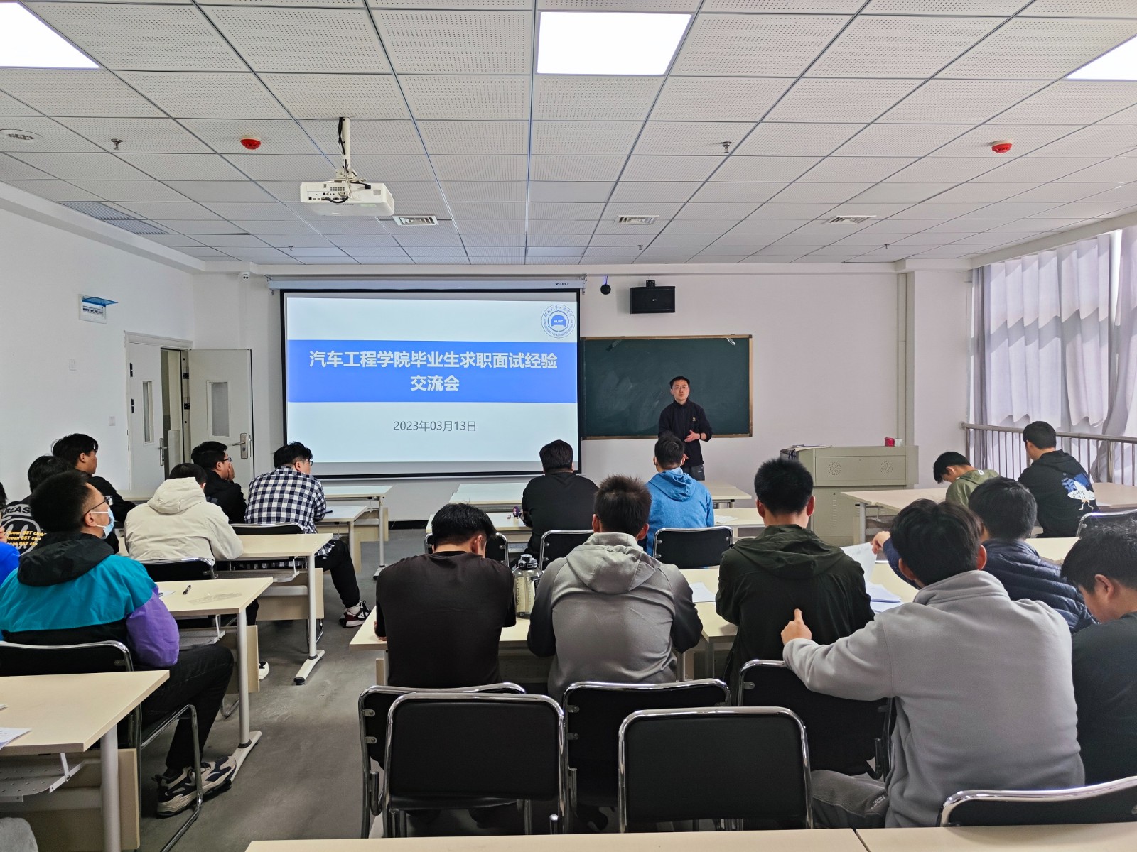 最后,李旭向同学们介绍了近期学校在校本部、襄阳基地的招聘宣讲会安排,鼓励大家积极投递简历、精心准备面试,早日找到合适自己的岗位。