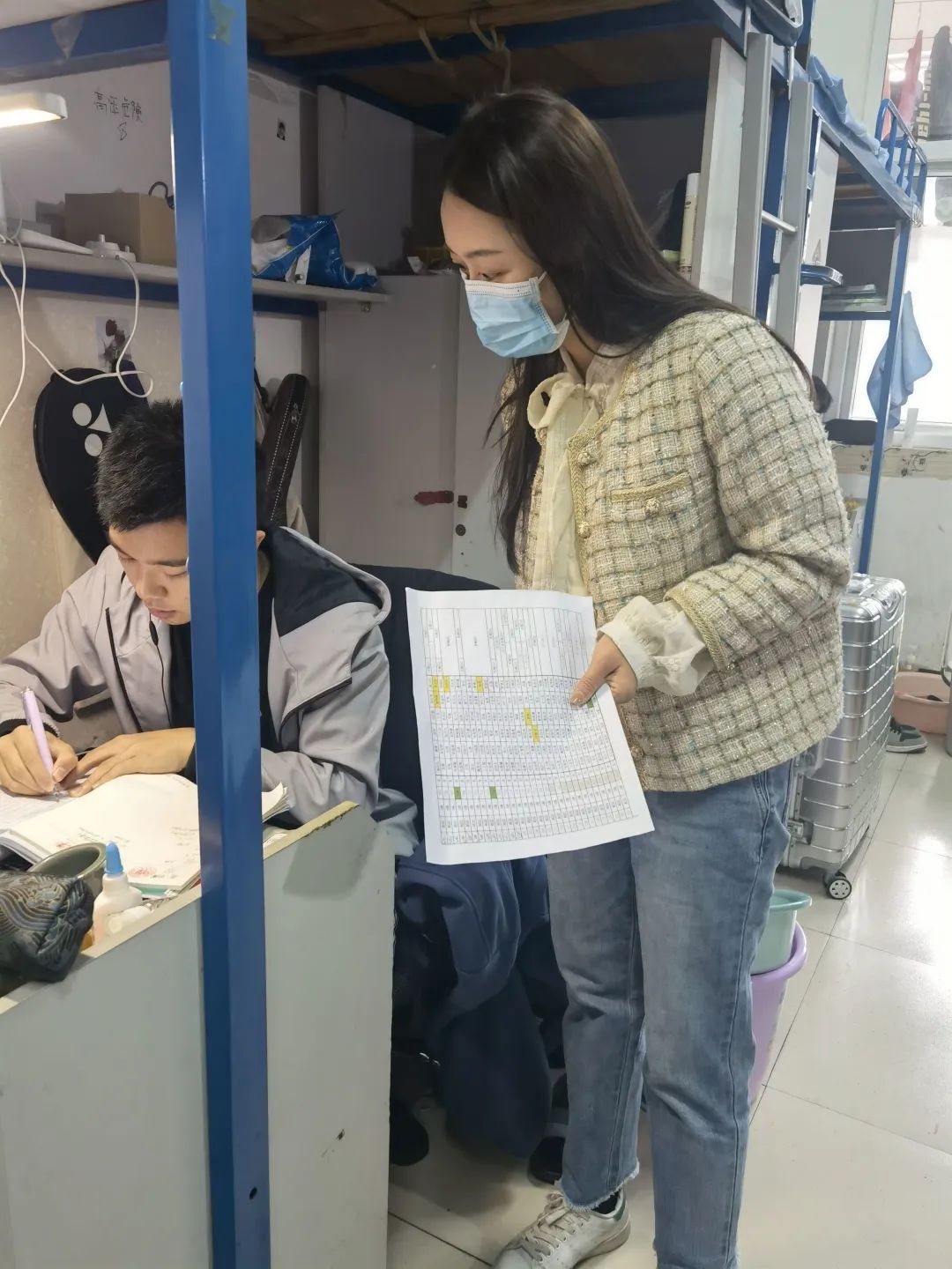 她定期深入课堂听课、查课,在听课过程中重点关注学生的听课态度,了解学生的听课状况,加强学生课堂纪律管理,全面了解学生课堂表现。在同学们的努力下,各班形成了“比、学、赶、帮”的良好学习风气,所带班级连续2年获评学校“优良学风班”,所带班级获考研优秀班级奖、考研优秀寝室奖。