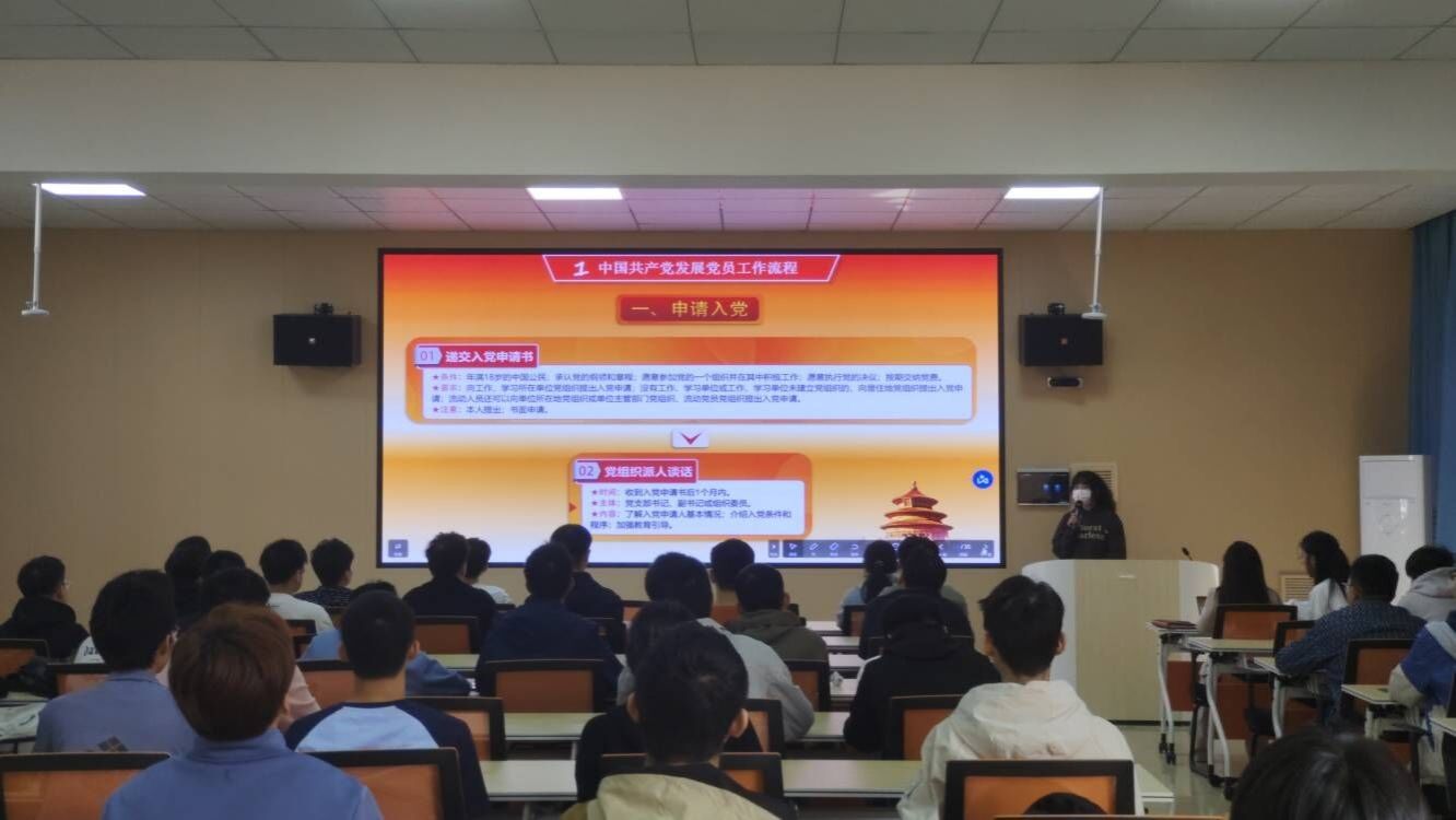 随后,学生党员袁越向入党积极分子详细介绍了中国共产党发展党员的工作流程、二十大党章修正案以及三线建设精神三个方面的内容。