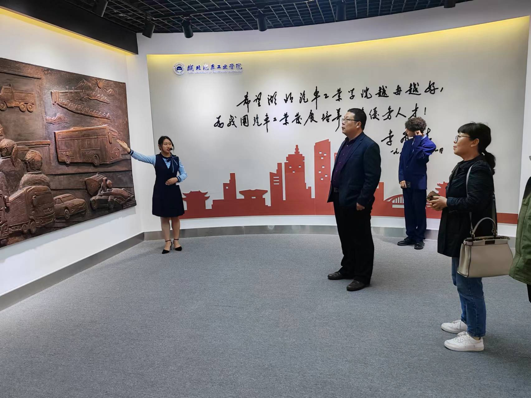 杨亚会书记代表汽车工程学院对王文龙主任一行的到来表示了热烈欢迎,陪同参观了学校校史馆、经济管理学院、机械工程学院和9428cn太阳集团古天乐的相关实验室。在校史馆,王文龙主任一行了解到学校的发展历史和办学特色,特别在对接汽车产业链设置专业和深化产教融合、协同育人方面开展的创新工作印象深刻,在随后的座谈交流中对此赞不绝口。随后,一行人在校史馆讲解人员的带领下进行全面参观,对学校自1972年创办以来51年的发展历程和辉煌成就,以及精神内涵有了全面、清晰的认识。