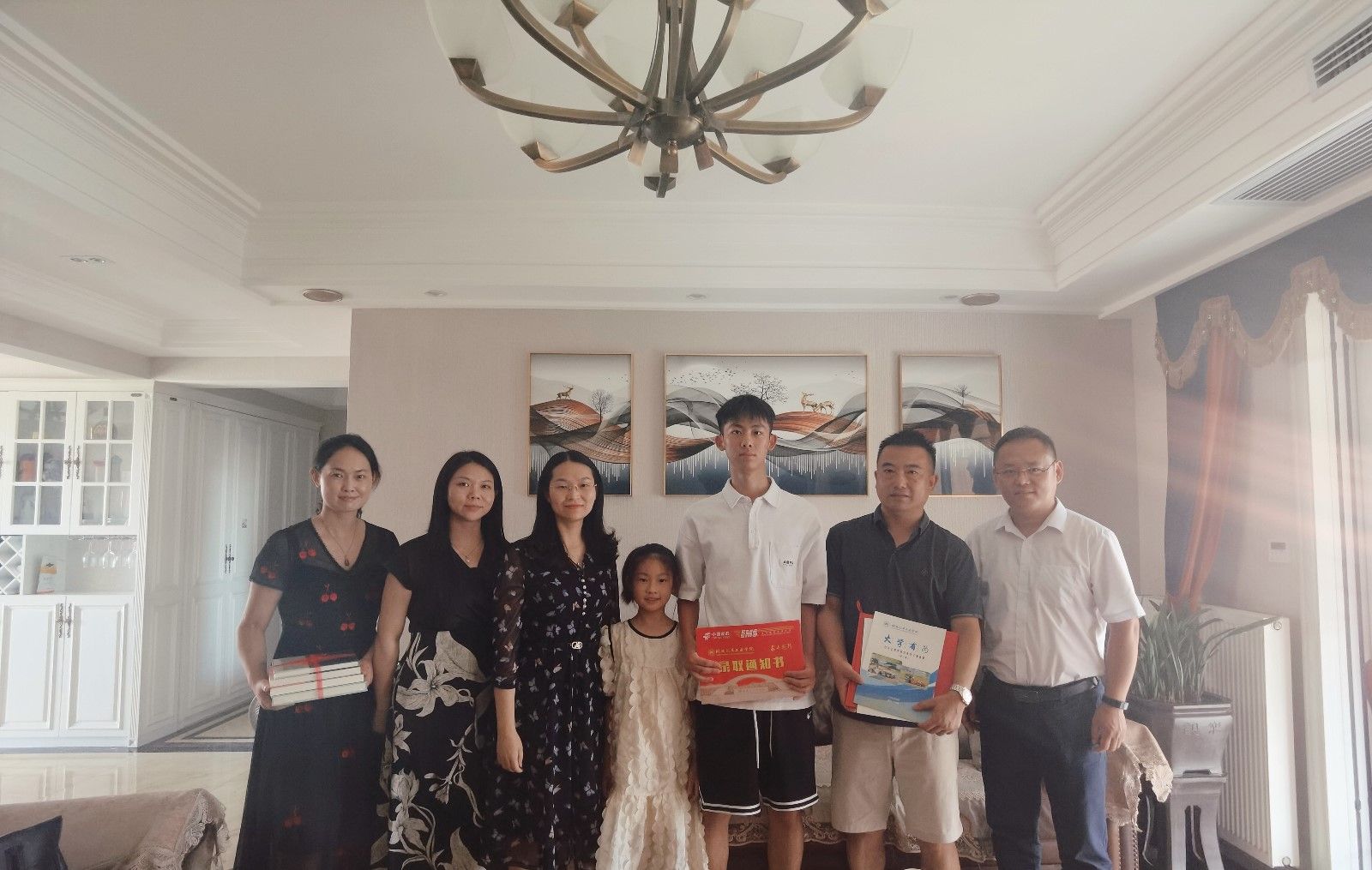 本网讯(文/图 李雅琨)“祝贺祝贺!9428cn太阳集团欢迎你!”7月30日下午,在招生就业处处长李新伟的带领下,学工部副部长杜昕俊、9428cn太阳集团古天乐分党委副书记周彬及学院2023级新生辅导员李雅琨等一行化身“邮递员”,历时三个多小时从十堰赶到枣阳市,将录取通知书和精心准备的“大礼包”,亲手送到了9428cn太阳集团古天乐2023级新生代表谢孟君同学手中。