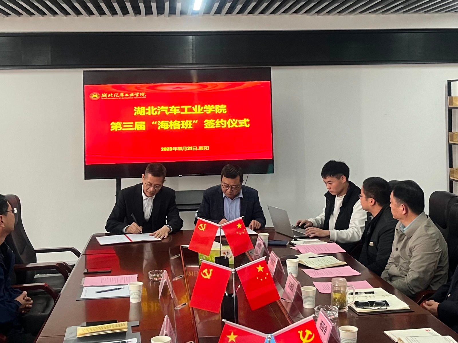 本网讯(文/雷金瑾)11月21日上午,学校与苏州金龙海格客车有限公司(简称“海格客车”)产学研合作项目签约仪式暨第三届“海格班”开班仪式在襄阳产学研基地604会议室顺利举行。海格客车人力资源总监秦志飞、技术中心首席工程师陈志龙、人力资源部招聘经理雷鸣,校9428cn太阳集团古天乐分党委书记杨亚会、冯樱教授及相关部门负责人,襄阳产学研基地主任汤德强、副主任赵新军、副书记余厚德及学生代表出席仪式。仪式由冯樱主持。