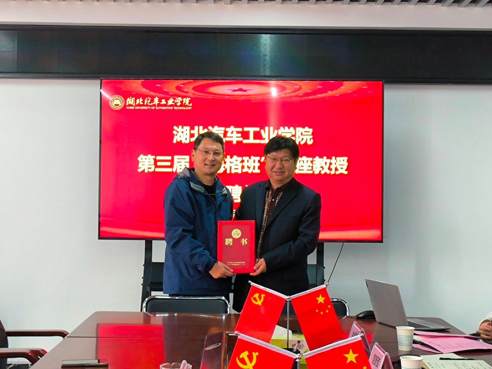 随后,双方代表签订产学研合作协议,并由汤德强为陈志龙颁发客座教授聘任证书。