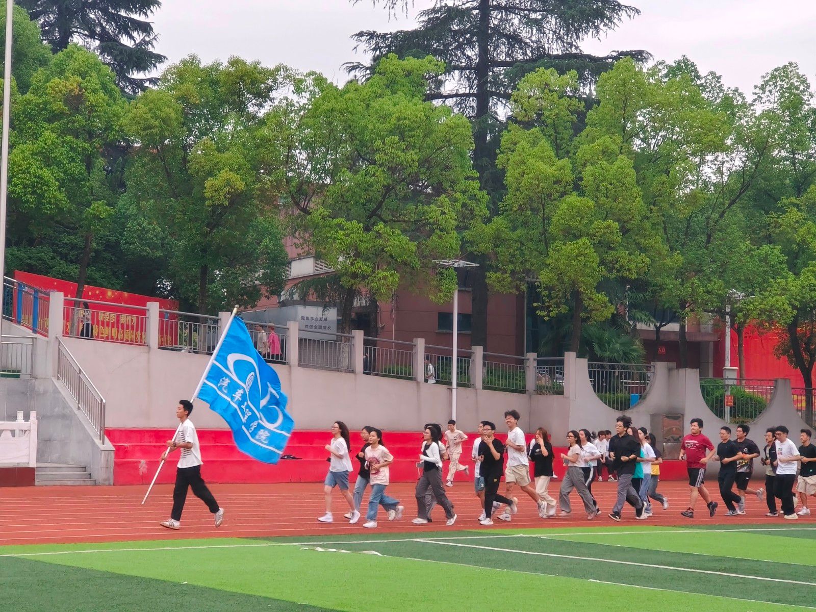 最后,学生党员和干部带领23级学生参加阳光健康跑。