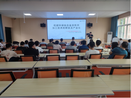 会上,张豪胤博士首先以低碳环保钛合金的技术开始说明,接着对材料、材料加工方法、研发及产业化发展,对碳环保工艺钛合金异形件的研发及产业化进行了简单汇报,并把自己的研究方向与产业化结合的经验做了介绍。