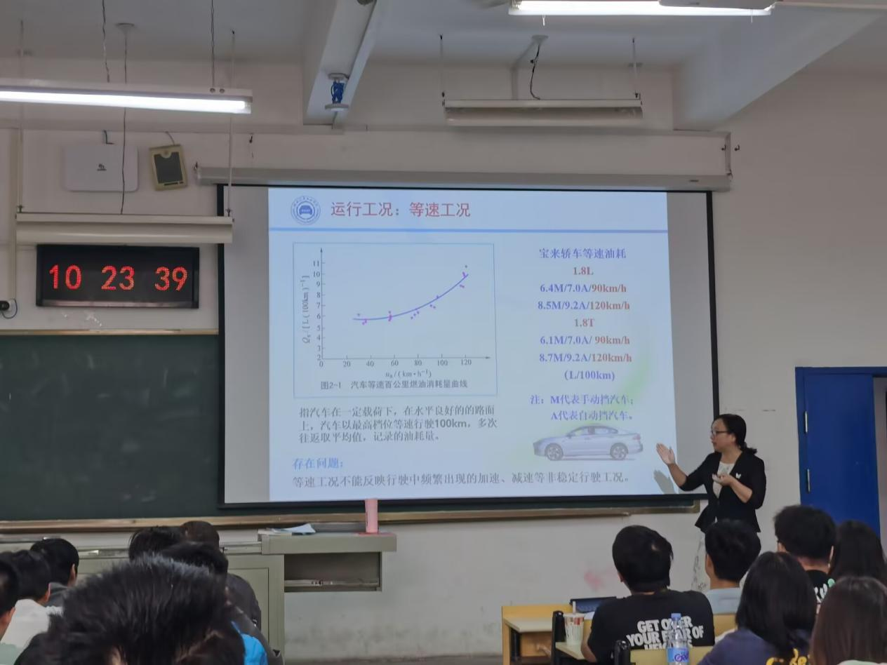 本次示范课主要内容为研究汽车性能的评价指标、评价方法及改善性的途径。课上,冯樱教授引入最前沿的汽车案例诠释了汽车燃油经济性、评价指标、积分经济等内容,以问题导入课程,以思维进阶的方式呈现知识,使整个课堂富有层次、动静有序、张弛有度,让学生在环环相扣的教学环节中巩固新知。