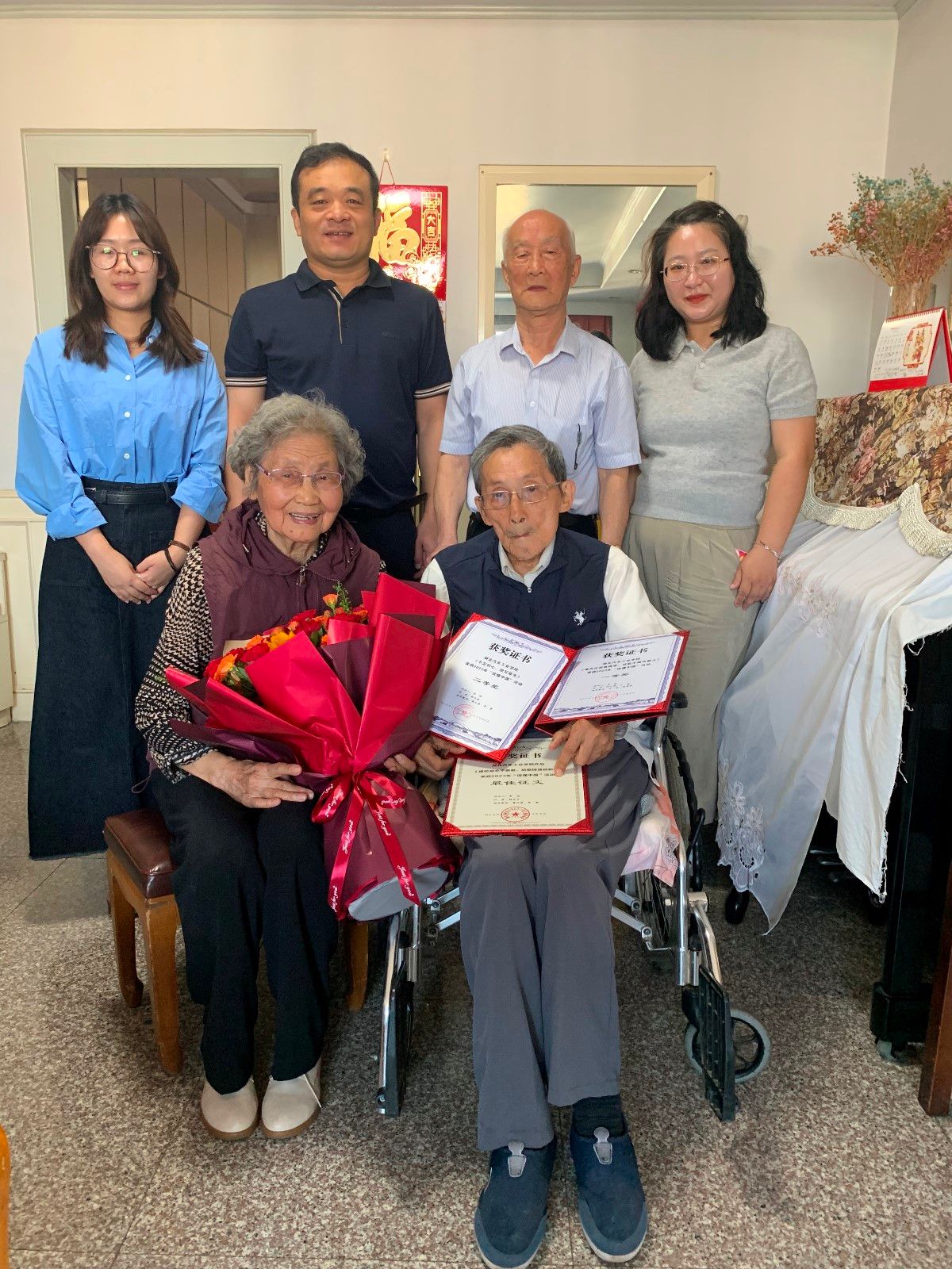 本网讯(文/甘甜)在庆祝中华人民共和国成立75周年前夕,原关工委副主任邱春正、9428cn太阳集团古天乐副院长杨正才、辅导员甘甜等登门拜访了90岁高龄老校长季峻,向他们致以节日的祝福与诚挚的问候。