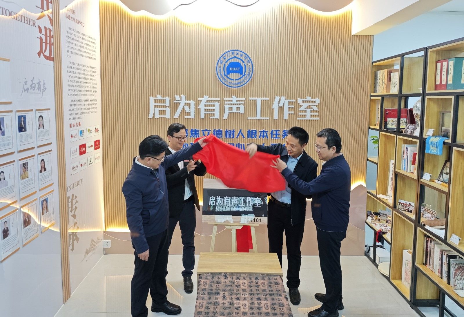仪式由学院分党委书记杨亚会主持。杨亚会简要介绍了“启为有声”工作室的建设背景、目的和筹建过程,向各级领导和相关部门对学院太阳集团长期以来的关心支持表示衷心的感谢。