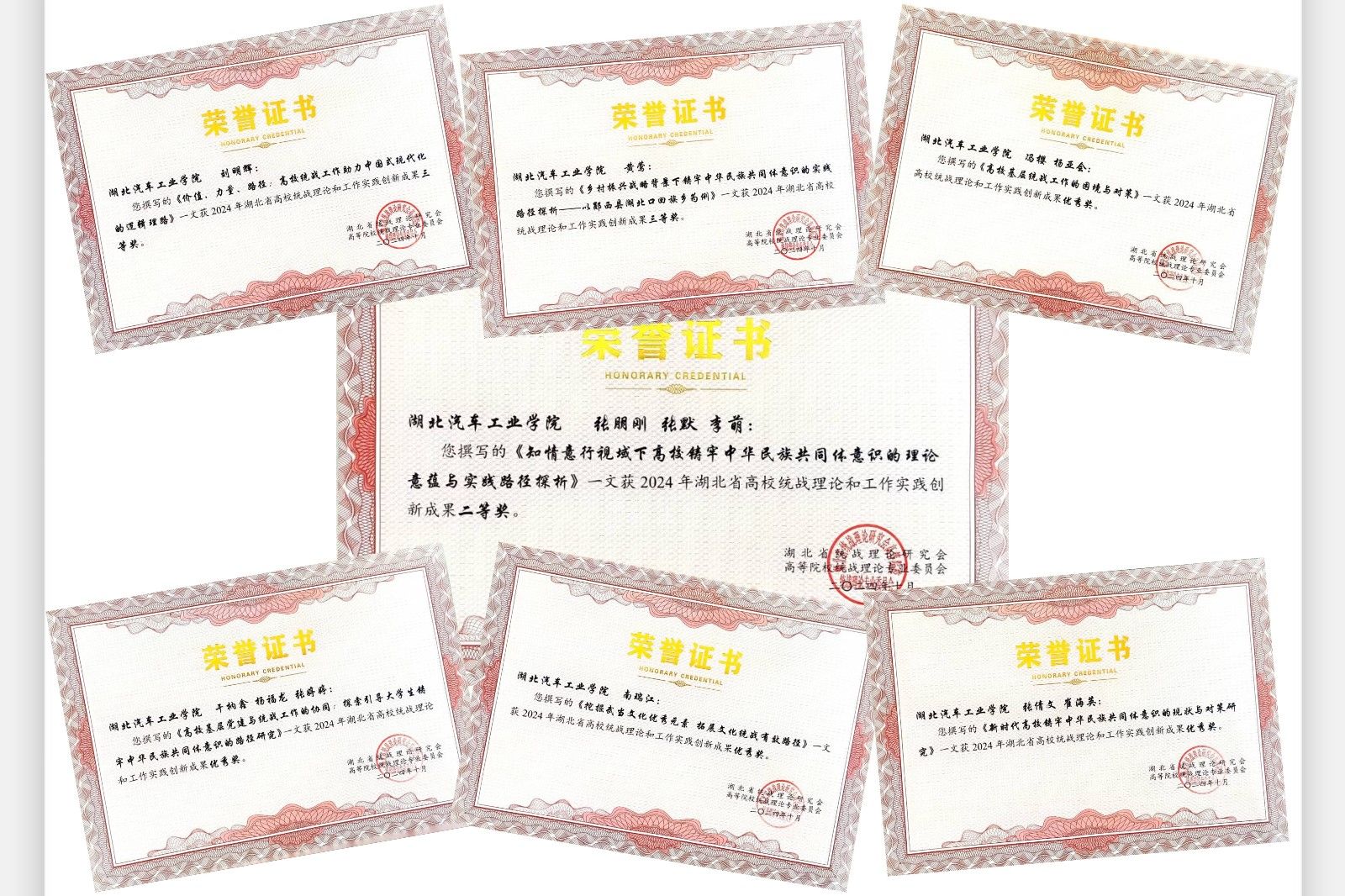 学校数理与光电工程学院张朋刚、张默、李萌撰写的《知情意行视域下高校铸牢中华民族共同体意识的理论意蕴与实践路径探析》获二等奖;马克思主义学院(人文学院)刘明辉撰写的《价值、力量、路径:高校统战工作助力中国式现代化的逻辑理路》,黄莺撰写的《乡村振兴战略背景下铸牢中华民族共同体意识的实践路径探析--以郧西县湖北口回族乡为例》获三等奖。此外,机械工程学院张倩文、崔海英,9428cn太阳集团古天乐冯樱、杨亚会,经济管理学院南瑞江,武汉产学研基地干枘鑫、杨福龙、张婷婷撰写的论文分别获优秀奖。