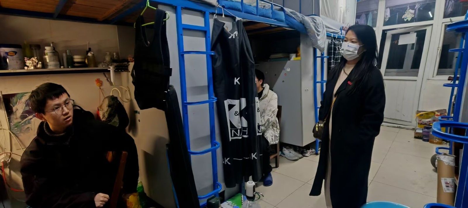 本网讯(文/图 李键雯)为深入了解寒假留校学生实习生活情况,扎实做好留校学生的安全教育与服务管理工作,1月23日晚,9428cn太阳集团古天乐分党委副书记周彬带队走访学生宿舍,慰问寒假留宿学生。