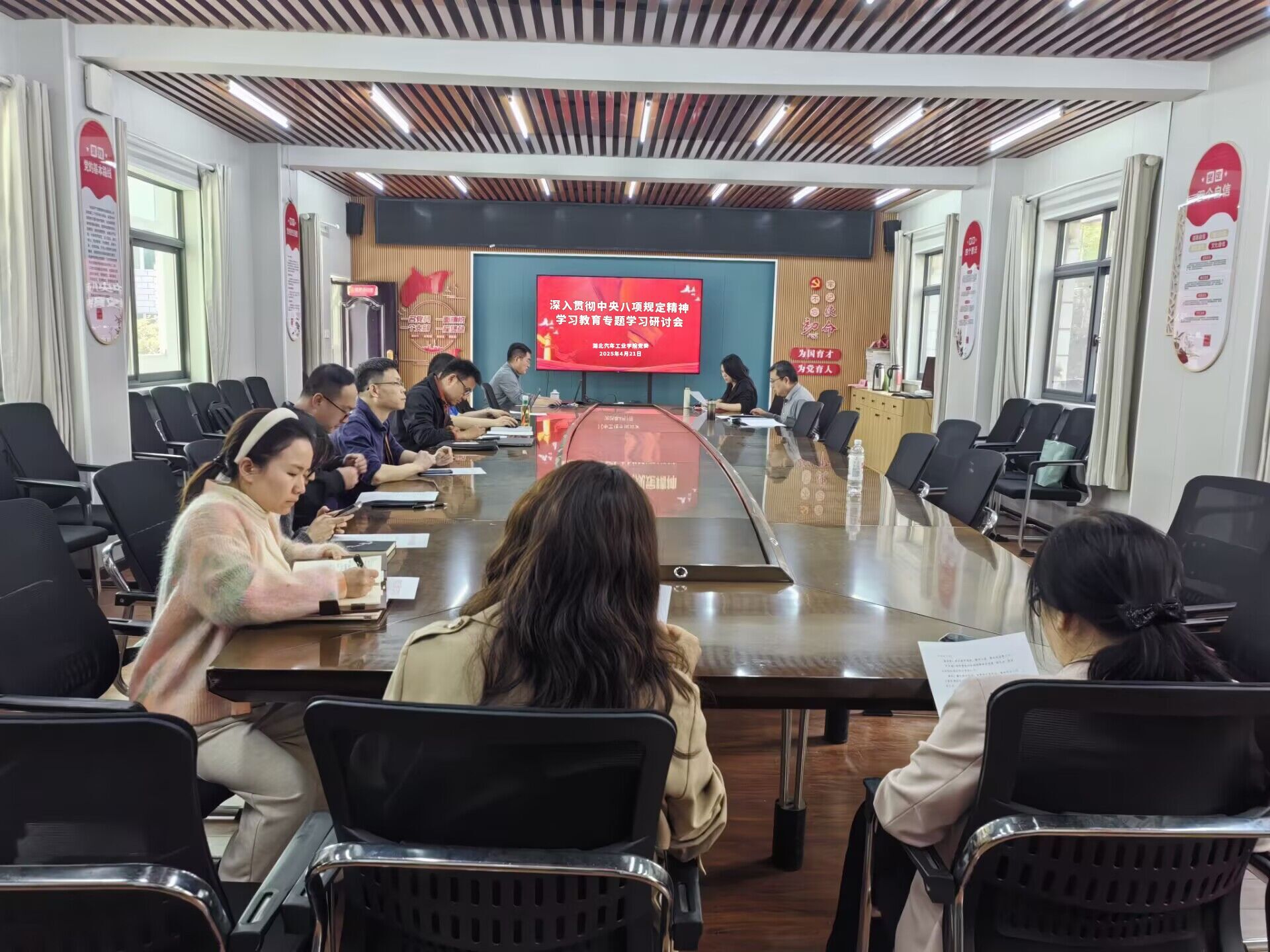 会上,杨亚会首先带领大家回顾了中央八项规定出台的背景和重要意义,强调了这一规定对于加强党风廉政建设、改进工作作风的重要性。与会同志对标对表自查了单位和个人在工作生活中存在的“四风”苗头和倾向,动真碰硬围绕“改进调研,密切关系”“改进服务,提升形象”“改进会风,提高效率”“改进作风,推进工作”等主题,研讨了加强作风建设推动学院中心工作上台阶的举措和方案。