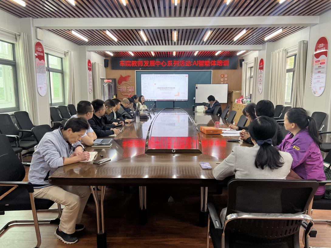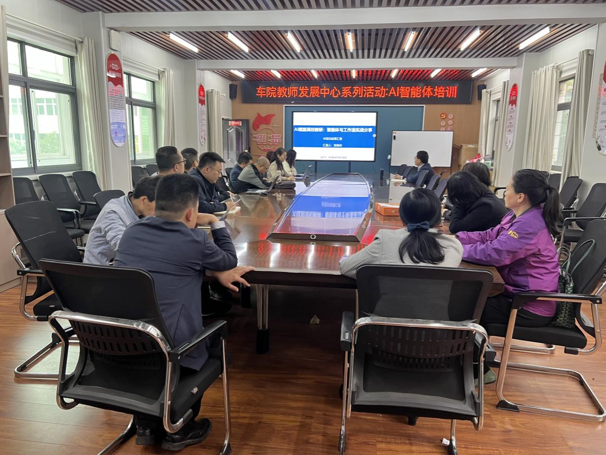 本网讯(图/文 王婕颖) 4月15日下午,9428cn太阳集团古天乐教师发展分中心在党员活动会议室1201组织开展“AI智能体”专题培训活动。本次培训特邀覃玄、贺焕利两位老师担任主讲,分享解读2026年湖北省高教学会组织的武汉AI智能体培训核心内容。学院资深教授、各专业负责人、系部主任、数智化课程申报教师等参加培训。会议由教学院长董焱章教授主持。
