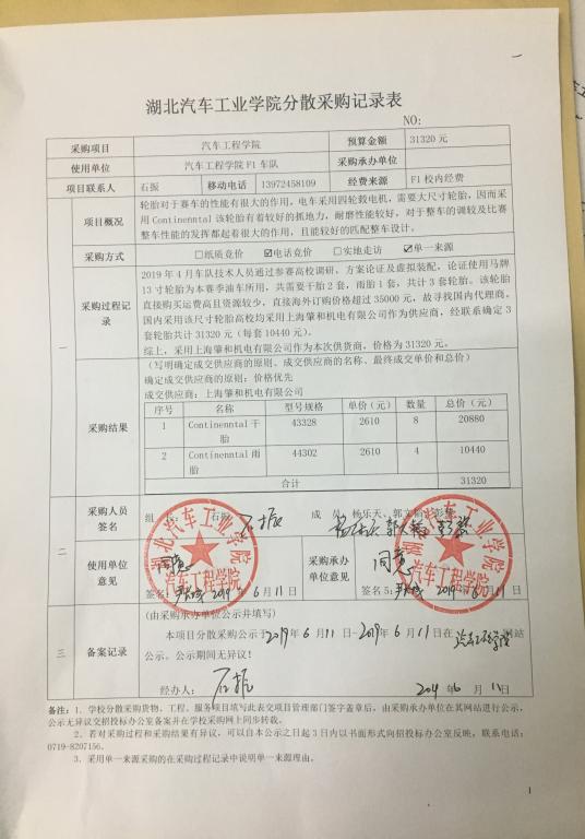 F1车队油车轮胎分散采购公示