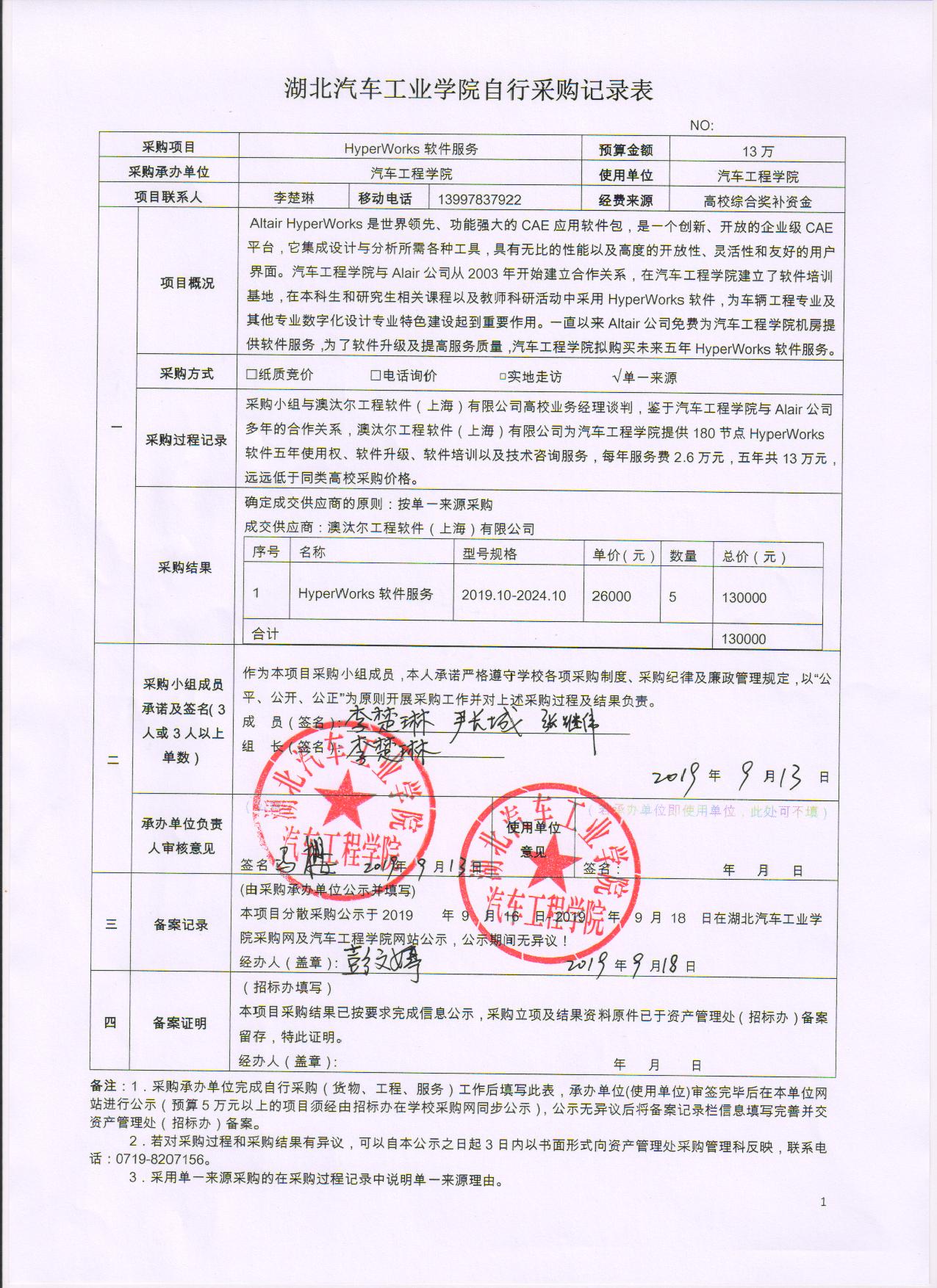 hyperworks项目自行采购记录表