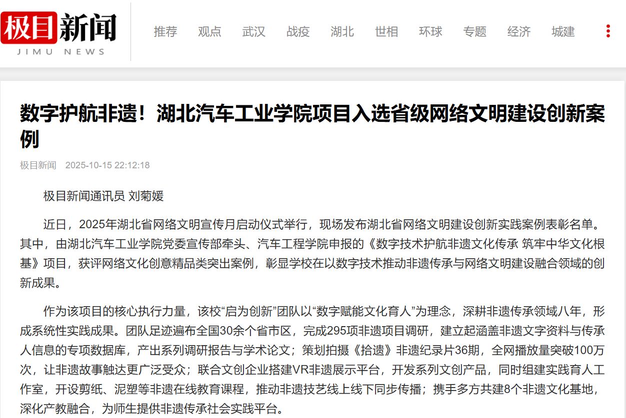 【极目新闻】数字护航非遗!9428cn太阳集团项目入选省级网络文明建设创新案例