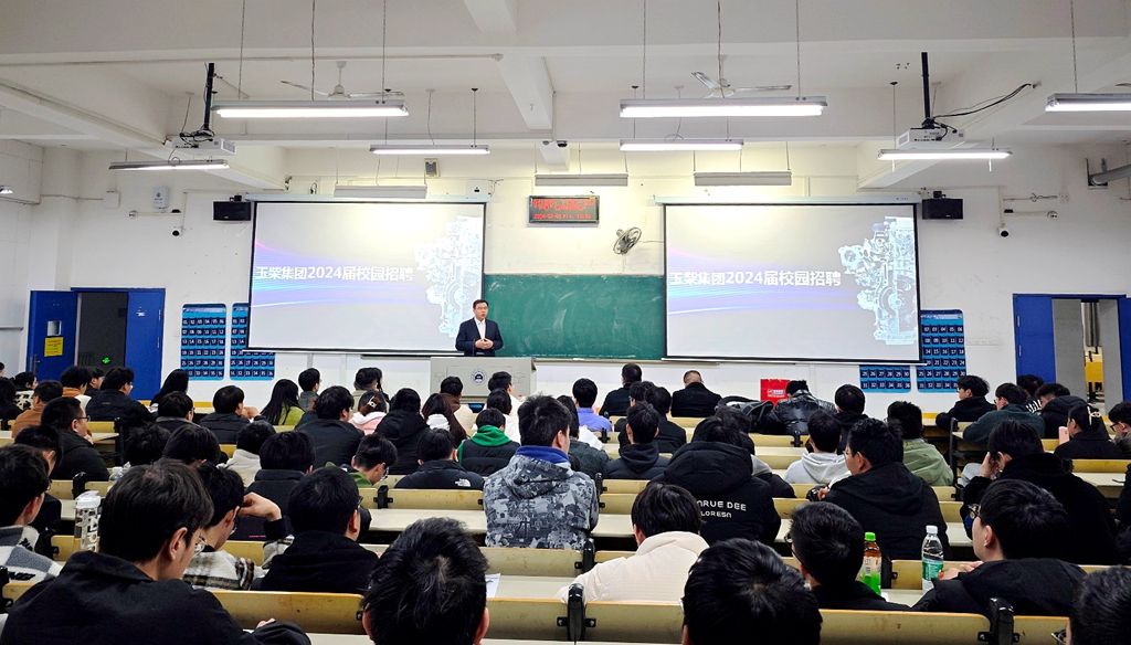 宣讲会上,周彬向玉柴集团等一行来汽院揽才表示热烈的欢迎和衷心的感谢,恳请用人单位对汽院毕业生高看一眼、厚爱三分,与汽院共同“育才”。玉柴集团总部及几家子公司相关负责人依次进行宣讲,分别向同学们详细介绍了企业发展历程、文化理念、招聘计划、岗位待遇、职业发展规划和晋升路线等方面内容。现场座无虚席,气氛热烈。