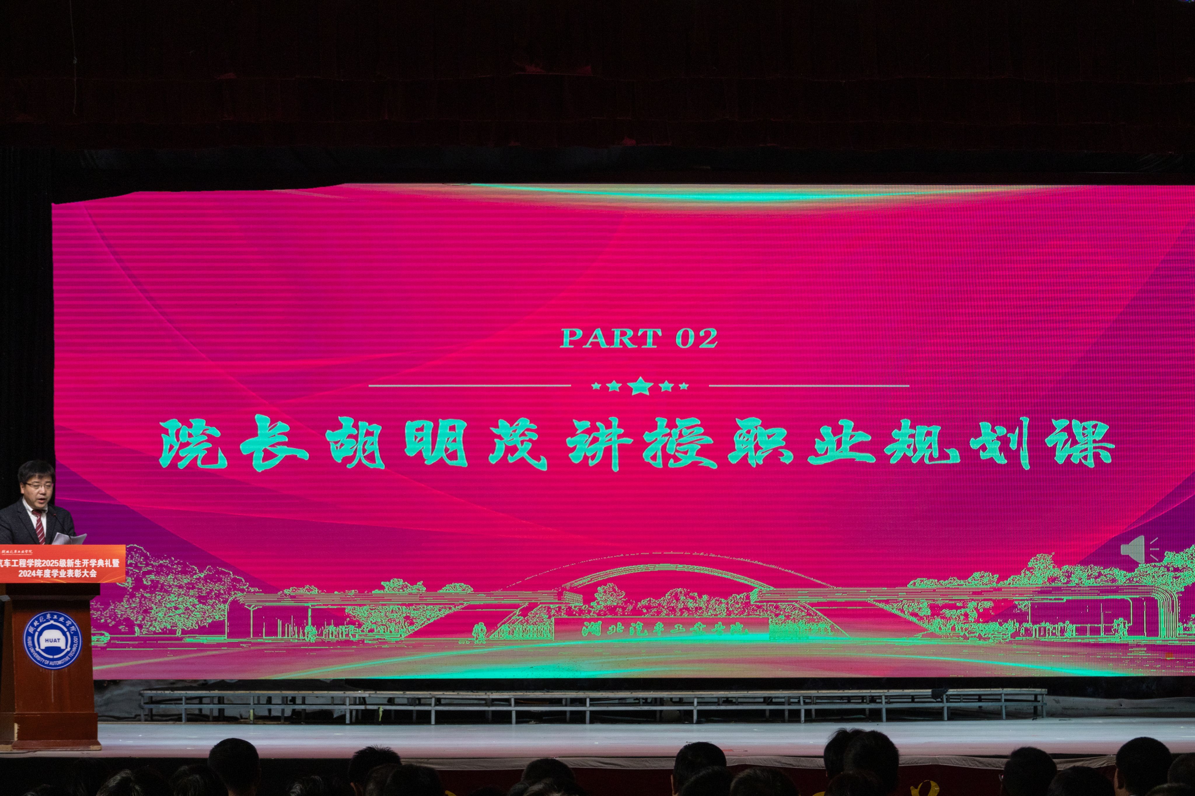 党委书记杨亚会教授随后开展了以“锚定就业坐标,赋能成长之路”为题,为新生讲授了一堂生动的就业指导课。他结合当前就业形势与学院专业特色,从政策环境、行业趋势、能力储备三个层面进行了深入解读。杨亚会指出,面对机遇与挑战并存的就业市场,学院构建了“校企合作、产教融合”的就业支持体系,全力为学生发展护航。他鼓励新生“既要仰望星空,也要脚踏实地”,从大一开始筑牢专业根基,积极参与实践,培育创新思维与团队协作能力。此外,杨亚会还对考研、考公、创新创业等多元发展路径进行了细致解答,现场互动频繁,气氛热烈。