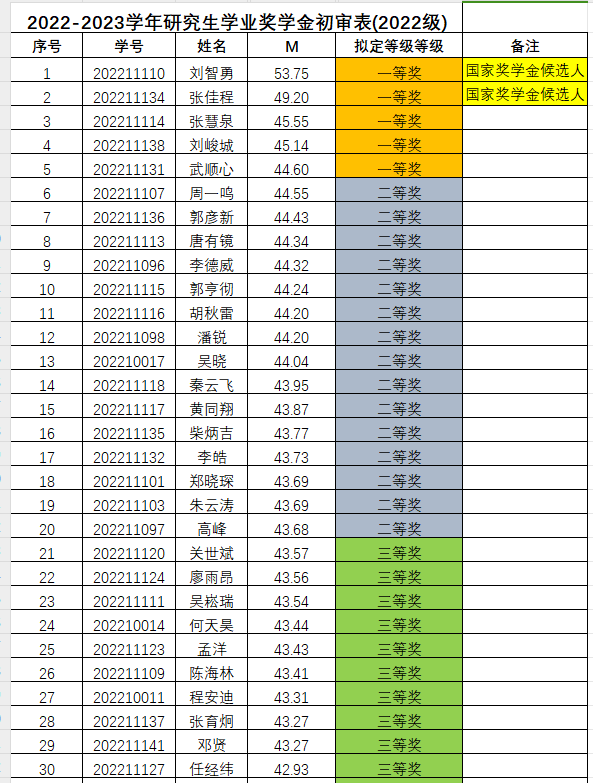 2022-2023学年研究生学业奖学金评审结果公示(2022级)