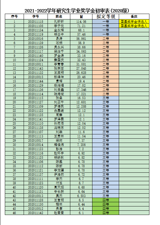2021-2022学年研究生学业奖学金结果公示(2020级)