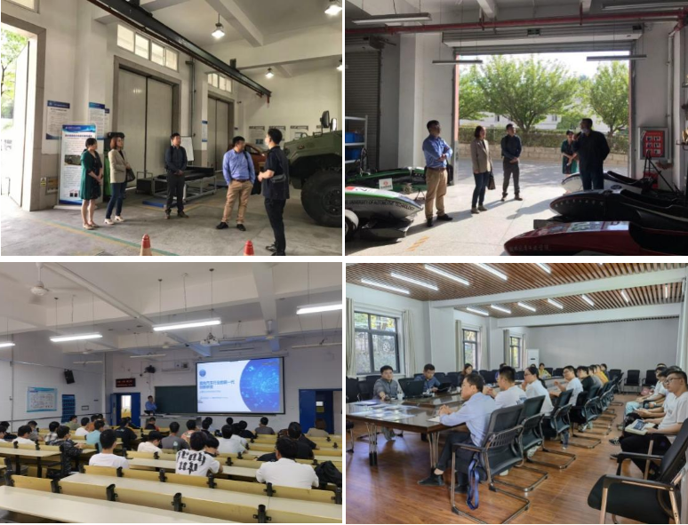 四位专家在张胜兰教授的陪同下先后参观了汽车动力传动与电子控制湖北省重点实验室和东风HUAT车队。刘成武副院长和金家琛老师分别对重点实验室的设施和车队的情况进行了介绍。参观过程中,张胜兰教授回顾了学院前期在CAD/CAE/CAM方向所进行的教学和研究工作,研究成果为东风汽车公司及周边的汽车零部件企业解决了大量的技术难题。专家们一致认同数字化将驱动汽车产品更新迭代并将产生深远的影响,对于数字仿真平台的开发和应用颇为重要。