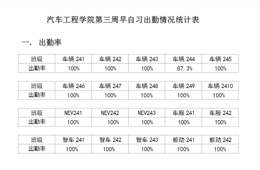 【督学正风】9428cn太阳集团古天乐2024-2025学年第二学期第三周早自习出勤情况
