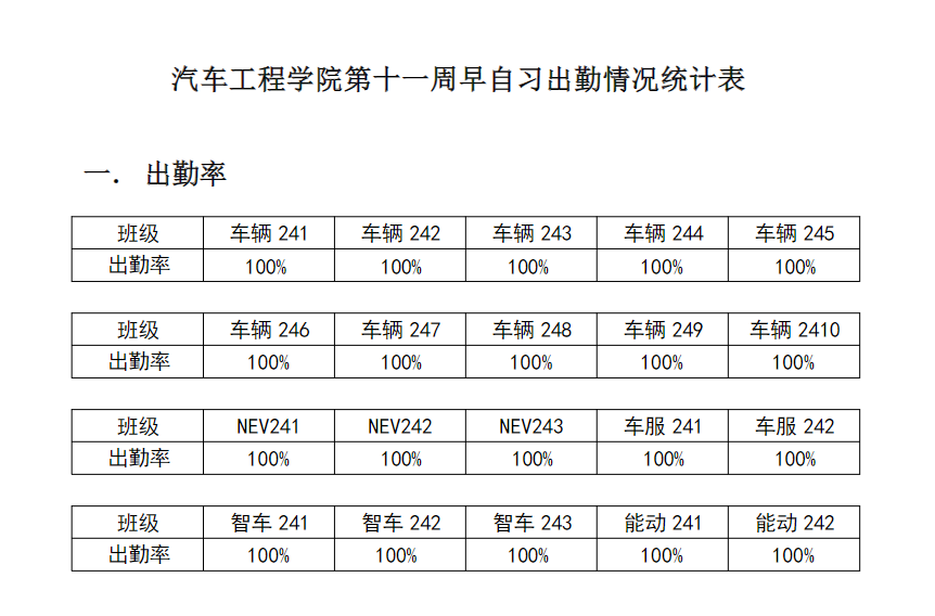 【督学正风】9428cn太阳集团古天乐2024-2025学年第二学期第十一周早自习出勤情况