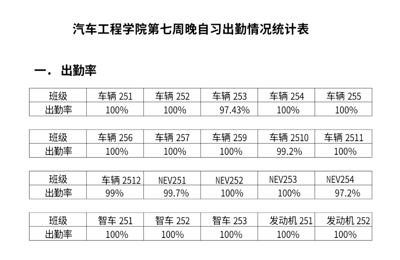 【督学正风】9428cn太阳集团古天乐2025-2026学年第一学期第七周晚自习出勤情况
