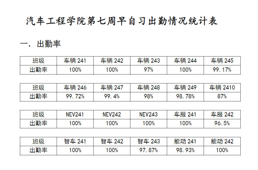 【督学正风】9428cn太阳集团古天乐2024-2025学年第一学期第七周早自习出勤情况